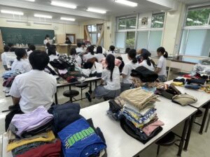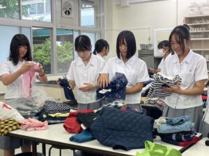 家庭基礎の授業でも、この服のチカラプロジェクトについて取り上げ、世界の難民の子どもたちに目を向けて私たちにできることは何かを学びました。みんなで協力しながら支え合う大切さを知る良いきっかけになったと思います。