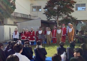 12月15日(月)には校内でクリスマスコンサートを行いました!ハイまちと同じ曲を、サンタやトナカイ、雪だるまの衣装を身につけて演奏しました。また、可愛いサンタ嬢からお菓子のプレゼントも!たくさんの生徒や先生方に楽しんでいただけたのではないかと思います。見に来てくれた皆さん、ありがとうございました!
